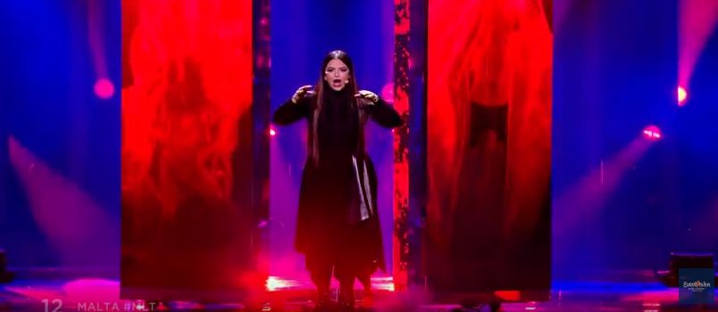 22.55 Участница от Мальты Кристабель поет на сцене с трех лет. На сцене "Евровидения она исполняет композицию "Taboo". Из декораций на сцене - сложная композиция со стенками, на которые проецируются изображения.