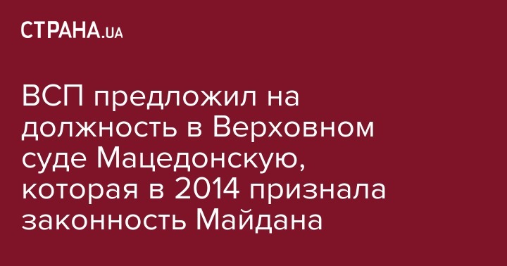 ВСП предложил на должность в Верховном суде Мацедонскую, которая в 2014 признала законность Майдана
