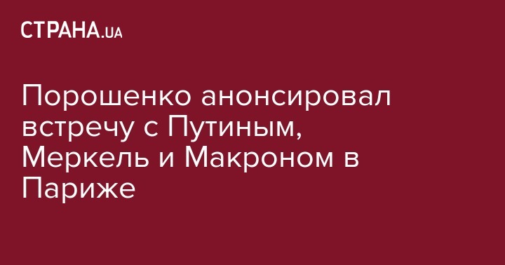 Порошенко анонсировал встречу с Путиным, Меркель и Макроном в Париже
