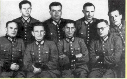 Роман Шухевич - второй слева на переднем плане. Групповое фото офицеров батальона абвера "Нахтигаль". Фото - uk.wikipedia.org