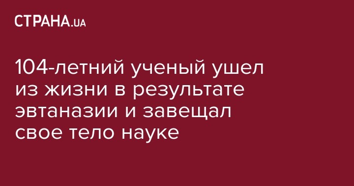 104-летний ученый ушел из жизни в результате эвтаназии и завещал свое тело науке