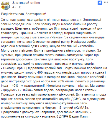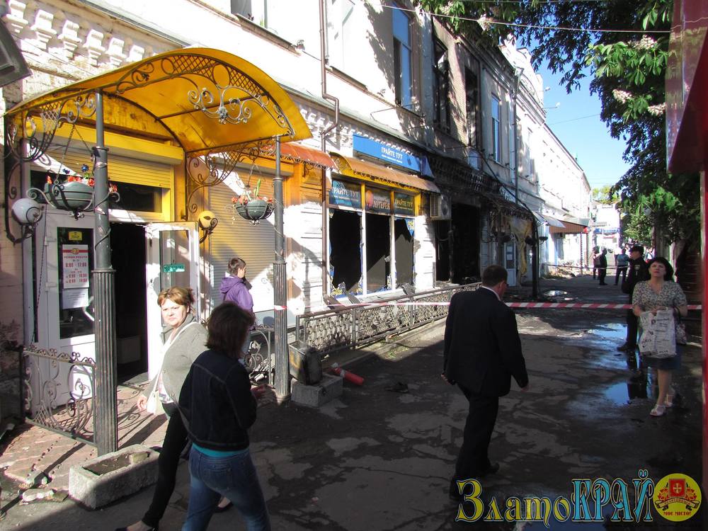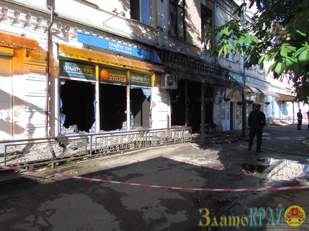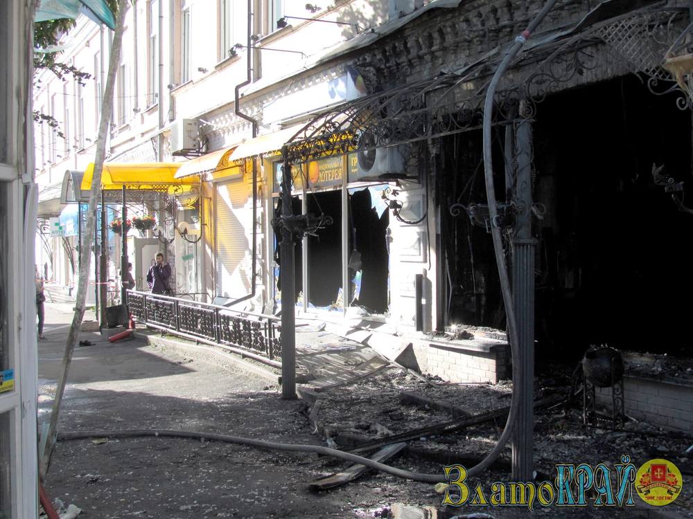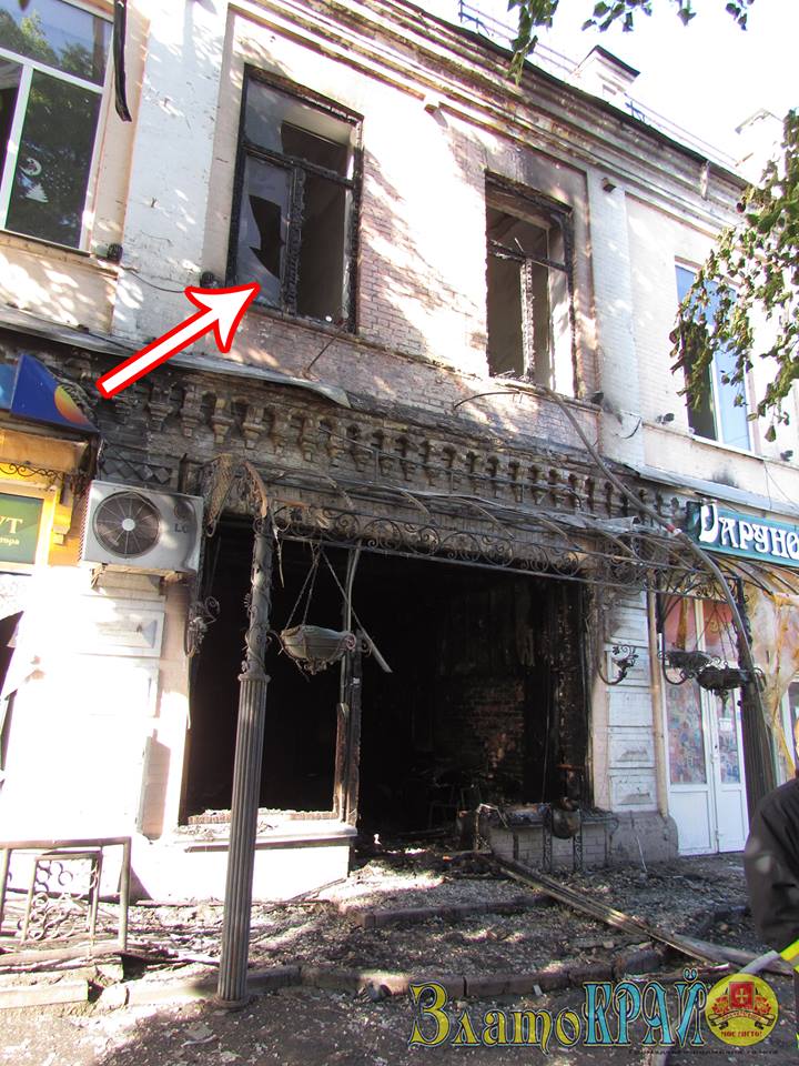 Как сообщает ресурс "Златокрай online" на своей странице в Facebook,  пожар начался в 4 часа утра после того, как неизвестный в темной одежде бросил коктейль Молотова в витрину.