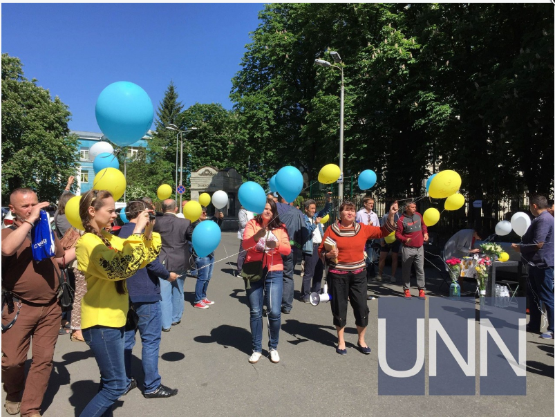 Сторонники заключенного народного депутата Украины Надежды Савченко пришли под СИЗО СБУ, чтобы поздравить ее с Днем рождения.