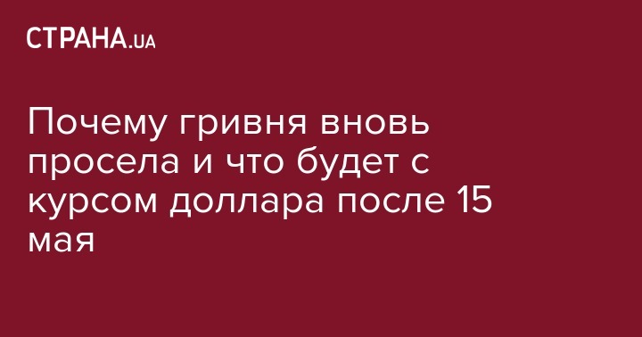 Почему гривня вновь просела и что будет с курсом доллара после 15 мая