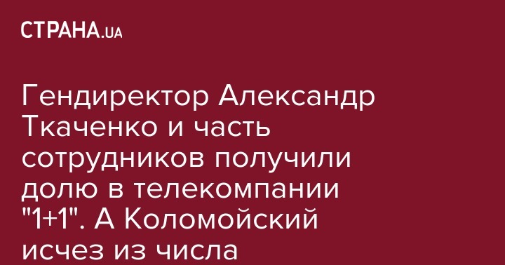 Гендиректор Александр Ткаченко и часть сотрудников получили долю в телекомпании "1+1". А Коломойский исчез из числа бенефициаров