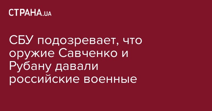 Служба безопасности Украины проверяет данные о возможной причастности российских военных к передаче оружия главе общественной организации "Офицерский корпус" Владимиру Рубану и депутату Верховной Рады Надежде Савченко (внефракционная). Об этом сообщил глава СБУ Василий Грицак, сообщает "Интерфакс-Украина".