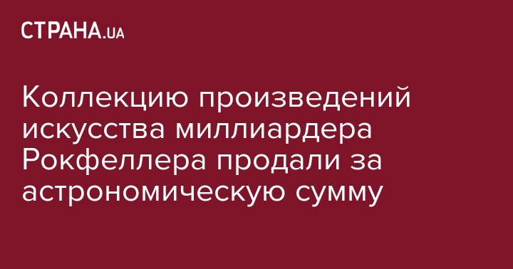 Коллекция произведений искусства, которая принадлежала покойному американскому миллиардеру Дэвиду Рокфеллеру и его жене Пегги, ушла с молотка за 830 миллионов долларов.