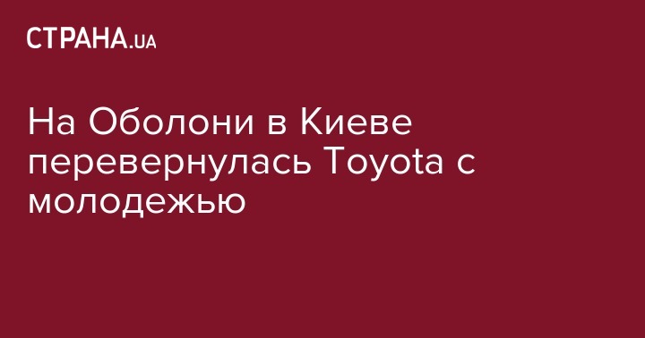 Ночью на проспекте Героев Сталинграда в Киеве Toyota вылетела на зеленую зону у дороги и перевернулась.