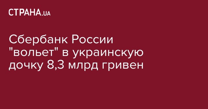 Российский государственный "Сбербанк" нарастит капитал дочернего банка в Украине на 66,58%, или на 8,3 миллиарда гривен - до 20,765 миллиарда гривен.