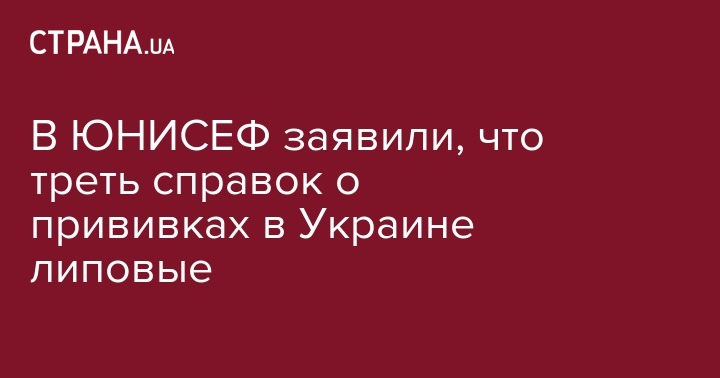 В Детском фонде ООН (ЮНИСЕФ) заявили, что среди справок о вакцинации в Украине около 30% - это фальшивые документы.