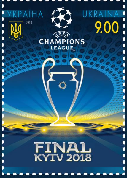 В Украине выпустили почтовую марку, посвященную финалу Лиги Чемпионов, который пройдет 26 мая в Киеве на НСК "Олимпийский".
