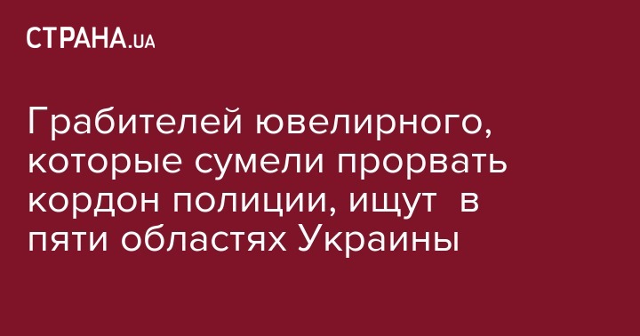 Как сообщает департамент коммуникации Национальной полиции Украины во вторник, при попытке задержания грабители оказали вооруженное сопротивление правоохранителям: с целью уничтожения доказательств сожгли авто, на котором совершали преступление, также похищенные драгоценности и, прорвав полицейский кордон, скрылись в направлении соседней области.