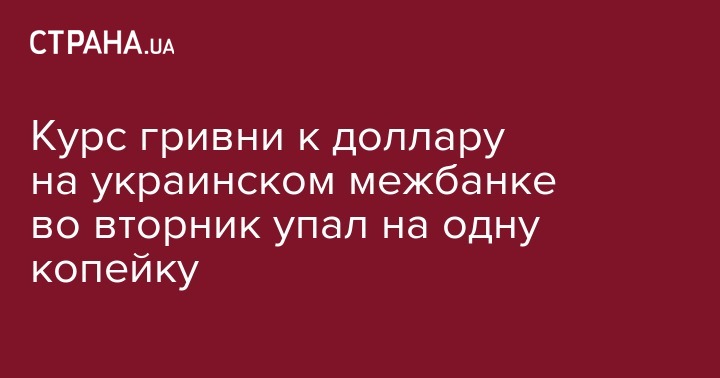 Курс гривни к доллару на украинском межбанке во вторник упал на одну копейку
