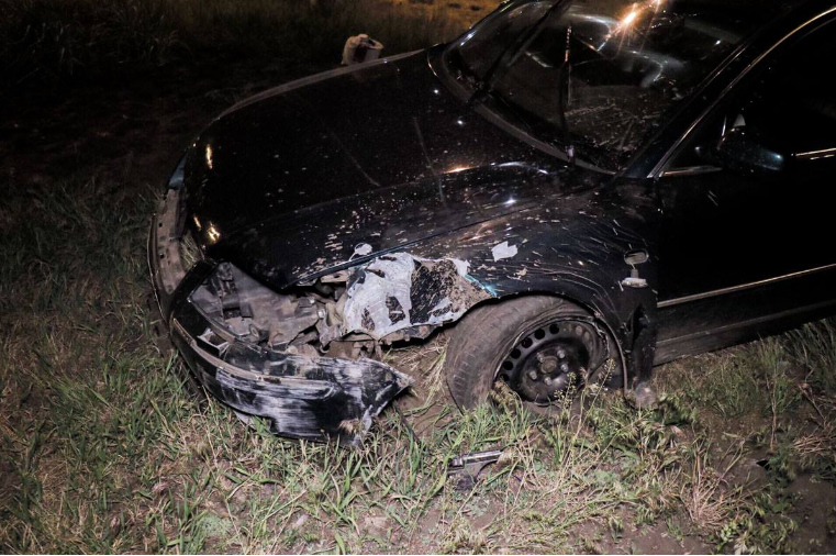Не успев среагировать на поворот, авто поехало прямо и вылетело с проезжей части. После чего проехало около 150 метров и остановилось на газоне. Машина зарылась в землю, передняя часть получила серьезные повреждения.