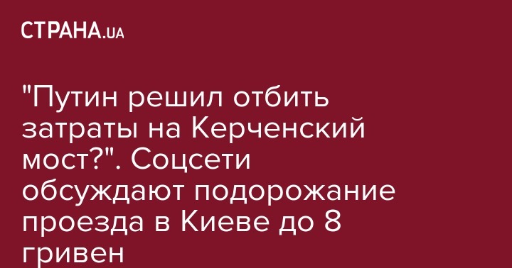 "Затраты на строительство Керченского моста Путин решил отбить за счет повышения цен на общественный транспорт в Киеве. Ну у меня нет других версий откуда эти 8 гривен взялись", - пишет Денис Гороховский.