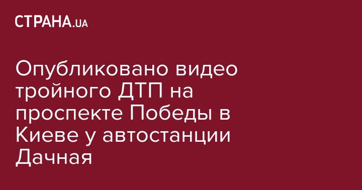 Появилось видео момента тройного ДТП на проспекте Победы в Киеве возле автостанции Дачная.