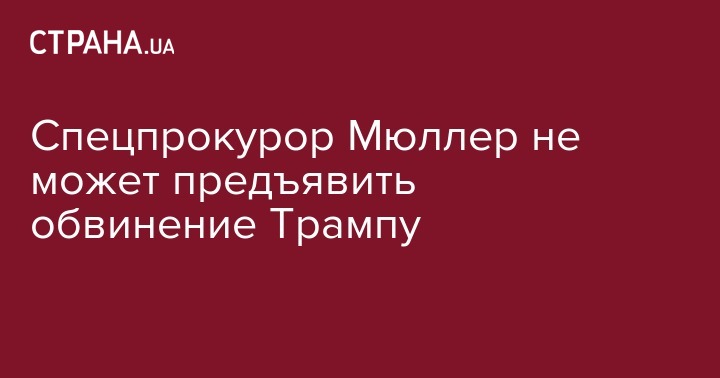 Специальный советник команды спецпрокурора Роберта Мюллера, занимающегося делом о вмешательстве России в президентские выборы в США, сообщил Белому дому, что они не могут выдвинуть обвинения президенту.