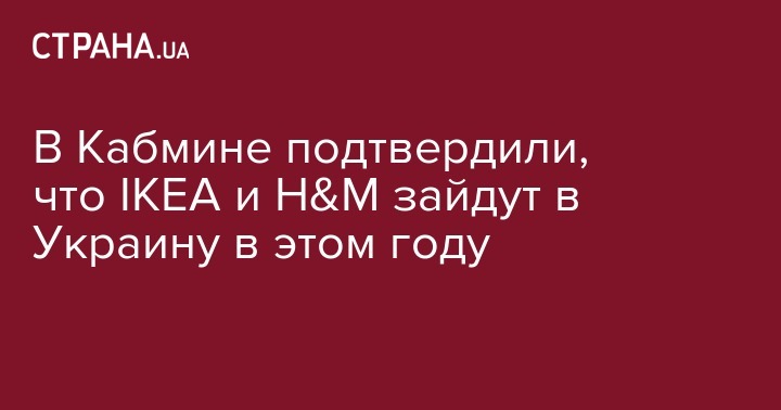 Вице-премьер-министр по вопросам евроинтеграции Иванна Климпуш-Цинцадзезаявила, что известные шведские бренды IKEA и H&M (Hennes & Mauritz) выйдут на украинский рынок в 2018 году.