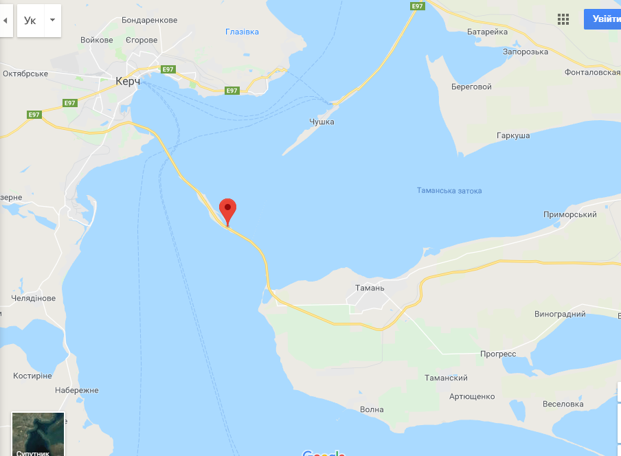 Однако проложить путь через мост нельзя до сих пор: при попытке построить маршрут от станицы Тамань до города Керчь сервис предлагает воспользоваться паромной переправой.