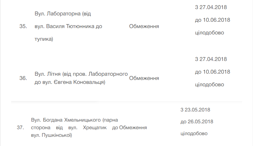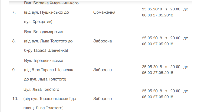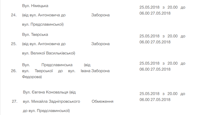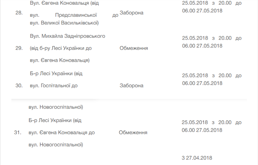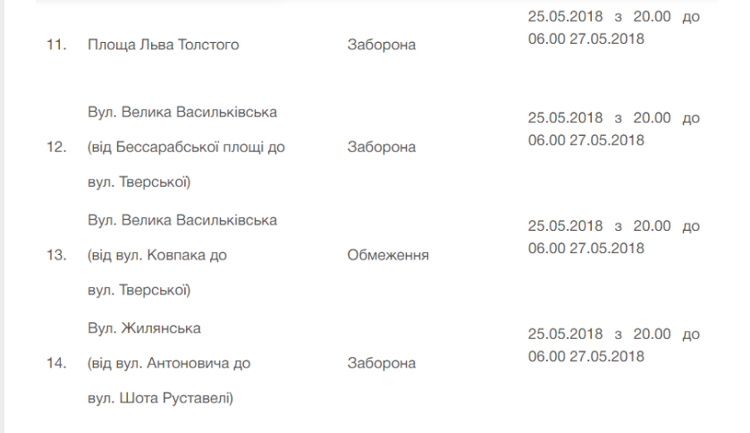 Более детальную информацию об ограничениях движения можно найти ЗДЕСЬ.