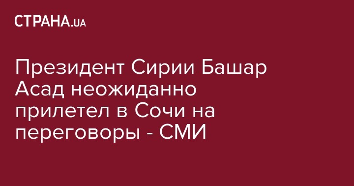 Президент Сирии Башар Асад неожиданно прилетел в Сочи на переговоры - СМИ