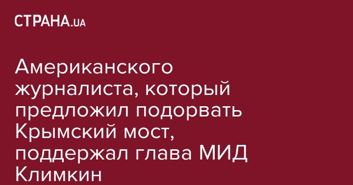 Том Роган, журналист американского издания Washington Examiner, который на днях предложил Украине подорвать Крымский мост, получил поддержку от министра иностранных дел Украины Павла Климкина.
