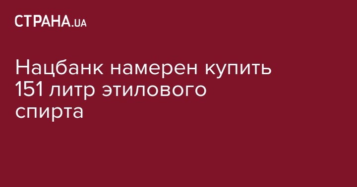 Национальный банк объявил тендер на закупку 151 литра этилового спирта за 26 967 гривен.
