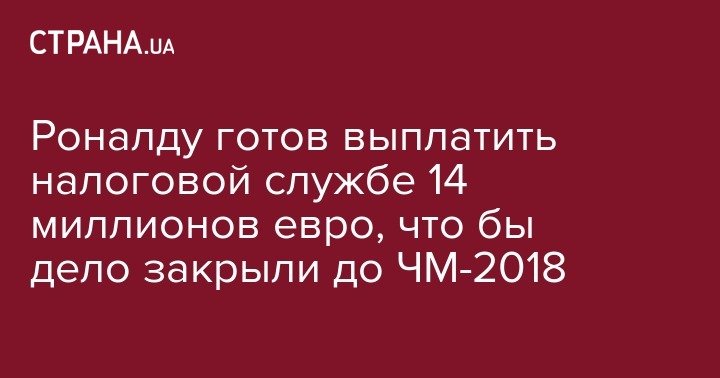 Звездному форварду "Реала" и сборной Португалии Криштиану Роналду до смерти надоело разбирательство с налоговой службой Испании. Он уже готов добровольно выплатить € 14 миллионов в качестве штрафа, чтобы дело против него закрыли.