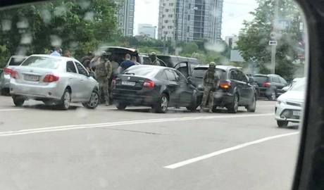 Как рассказали очевидцы, машина двигалась по проспекту Науки, затем повернула налево. В начале улицы Отакара Яроша ее заблокировали со всех сторон другие машины, из которых вышли люди в камуфляже с оружием.