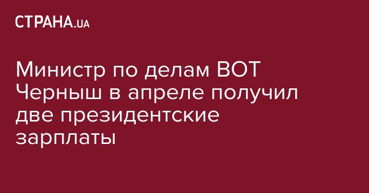 Зарплата министра по вопросам временно оккупированных территорий и внутренне перемещенных лиц Вадима Черныша за апрель составила 52 054 гривны. Для сравнения глава государства за этот же период заработал почти вдвое меньше - 28 тысяч гривен.