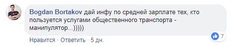 Журналист Богдан Бортаков также говорит о том, что зарплата людей, которые ездят на общественном транспорте, гораздо ниже: "Дай инфу по средней зарплате тех, кто пользуется услугами общественного транспорта, манипулятор".