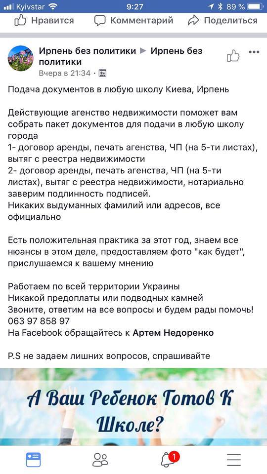 Ребенка обещают оформить в любую школу Киева или Ирпеня. Услуги выполняют действующие отрудники агентства недвижимости.