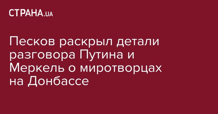 Пресс-секретарь российского президента Владимира Путина Дмитрий Песков раскрыл детали разговора Владимира Путина и немецкого канцлера Ангелы Меркель о миротворческой миссии на Донбассе.