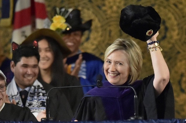Бывший кандидат в президенты США Хиллари Клинтон, проигравшая Дональду Трампу, пришла на встречу с выпускниками Йельского университета с советской армейской шапкой-ушанкой.