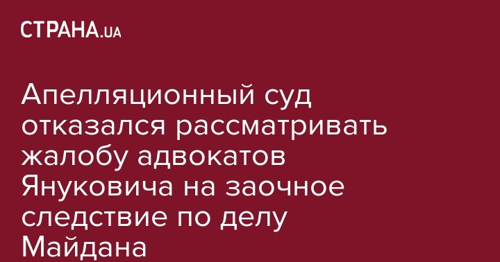 Апелляционный суд отказался рассматривать жалобу адвокатов Януковича на заочное следствие по делу Майдана