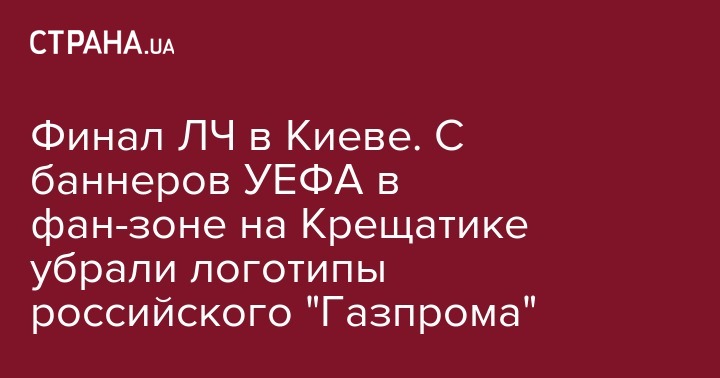 УЕФА поддержала позицию киевских властей о невозможности использования логотипов российского "Газпрома" в качестве партнера УЕФА при оформлении территории "Фестиваля чемпионов" для болельщиков и гостей финала Лиги Чемпионов на Крещатике.