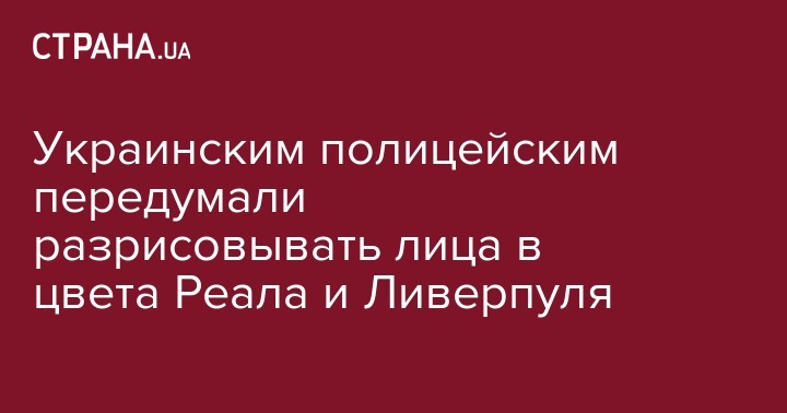 Украинские полицейские во время проведения финала Лиги чемпионов УЕФА в Киеве не будут нести службу с лицами, разрисованными в цвета Реала и Ливерпуля.  Об этом сообщил глава полиции Киева Андрей Крищенко, пишет 112 Украина.
