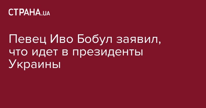 Известный украинский певец и композитор Иво Бобул заявил, что будет баллотироваться в президенты Украины на грядущих президентских выборах.
