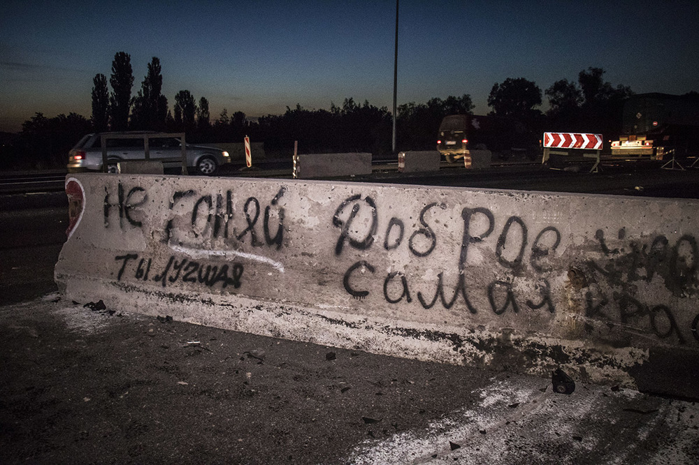 В авто находились двое молодых парней. На этом участке дороги возле поворота на село Круглик под Киевом проводятся ремонтные работы и проезд перекрыт.