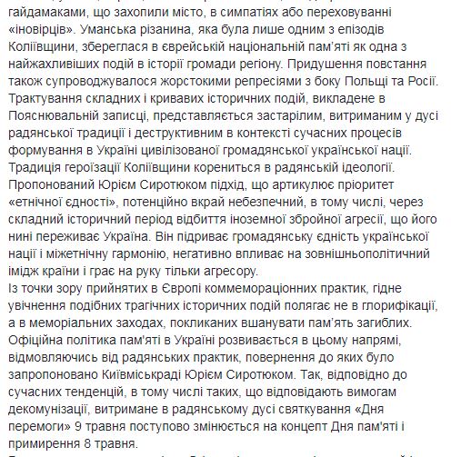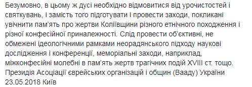 Ассоциация предлагает отказаться от мероприятий "в духе 9 мая" и "вместо того, подготовить и провести мероприятия, призванные увековечить память о жертвах Колиивщины разного этнического происхождения и разной конфессиональной принадлежности".