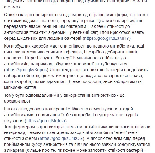 Поэтому антибиотики могут присутствовать в мясе, которое мы покупаем. Об этом на своей странице в Facebook сообщила и.о. главы Минздрава Ульяна Супрун.