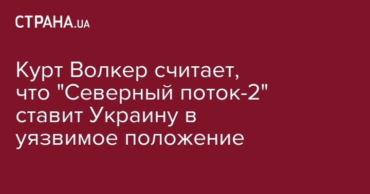 Специальный представитель Госдепартамента США по вопросу Украины Курт Волкер считает, что запуск газопровода "Северный поток-2" поставит Украину в уязвимое политическое положение.