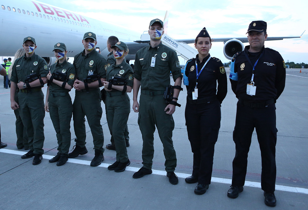Пограничный контроль обеих команд осуществлялся на приоритетной основе. У трапов самолетов финалистов уже встречали пограничники, которые имели заранее заявленные списки. Это значительно ускорило процедуру пограничного контроля и сэкономило время.