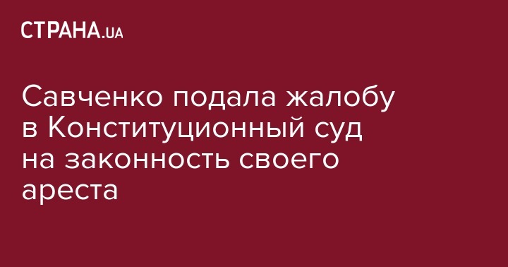 Внефракционный нардеп Надежда Савченко, которая находится под арестом в СИЗО по подозрению в подготовке терактов, подала жалобу в Конституционный суд Украины на незаконность своего содержания под стражей.