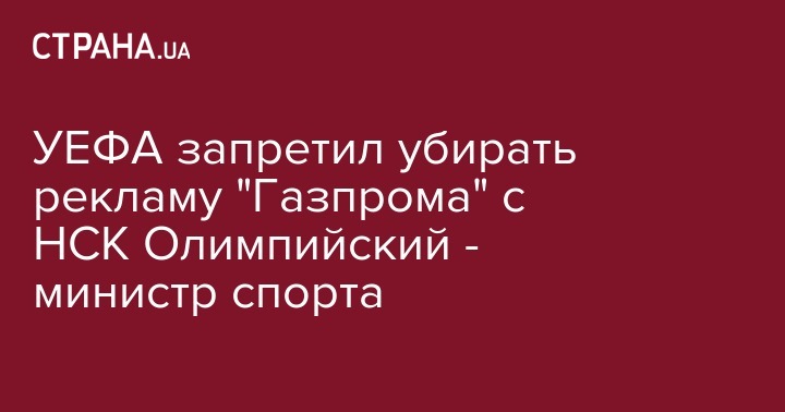 Союз европейских футбольных ассоциаций (УЕФА) заявил, что не может убрать рекламу "Газпрома" с киевских стадионов из-за контракта. Об этом сообщил министр молодежи и спорта Игорь Жданов после  встречи с исполнительным директором УЕФА Мартином Калленом, передает "Укринформ".