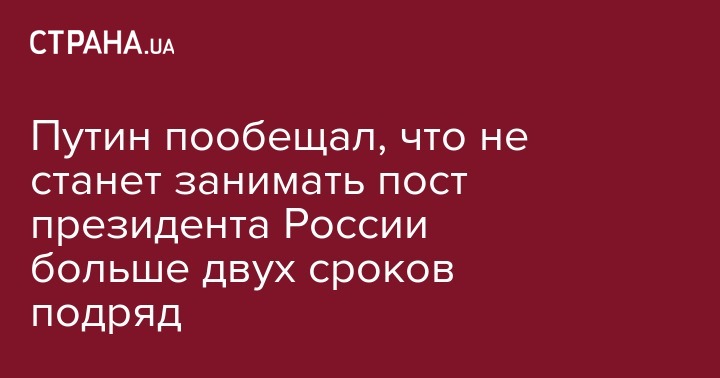 Путин пообещал, что не станет занимать пост президента России больше двух сроков подряд