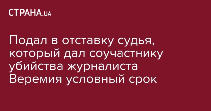 Судья Шевченковского райсуда Киева Олег Линник, который вынес решение относительно условного срока Юрию Крысину по делу об убийстве журналиста Вячеслава Веремия, подал в отставку.