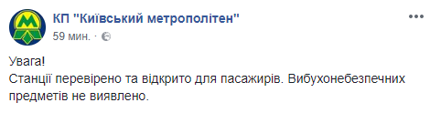 "Станции проверены и открыты для пассажиров, в ходе проверки взрывоопасных материалов не обнаружено", - сказано в сообщении метрополитена.