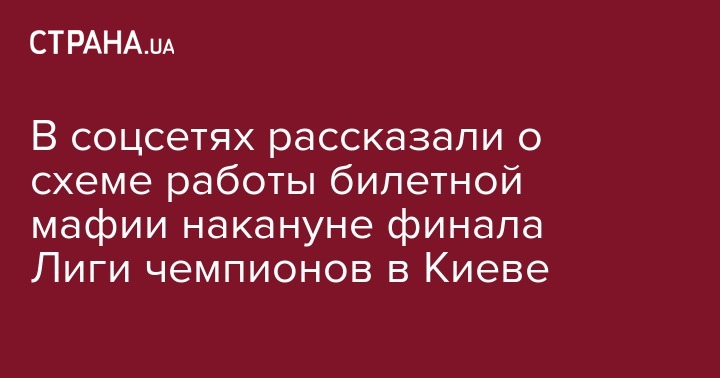 В соцсетях рассказали о схеме работы билетной мафии накануне финала Лиги чемпионов в Киеве