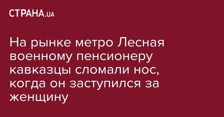 Сегодня, 26 мая, на рынке у метро Лесная в Киеве военного пенсионера избили торговцы с Кавказа, когда он заступился за женщину. Про конфликт рассказала дочь пострадавшего Елена Стойко на своей странице в Facebook.